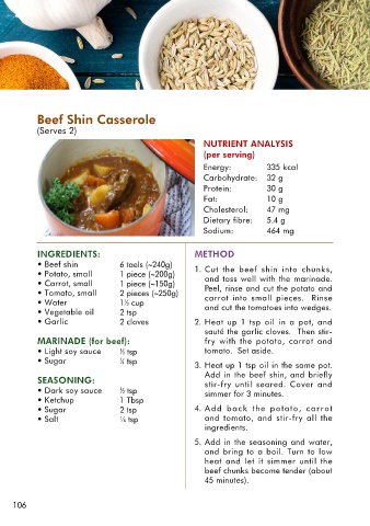 • Potato, small 1 piece (~200g) 1. Cut the beef shin into chunks,