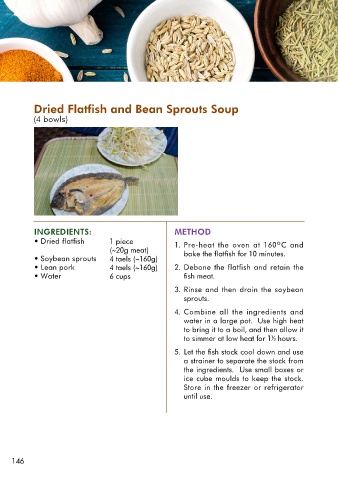 • Lean pork 4 taels (~160g) 2. Debone the flatfish and retain the