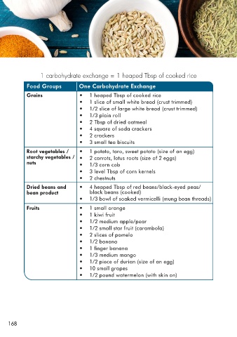 1 carbohydrate exchange = 1 heaped Tbsp of cooked rice