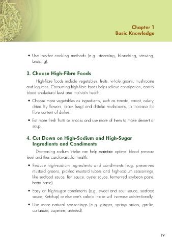 • Use low-fat cooking methods (e.g. steaming, blanching, stewing,