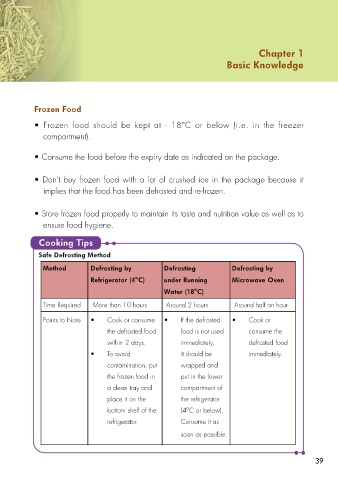 • Frozen food should be kept at - 18ºC or below (i.e. in the freezer