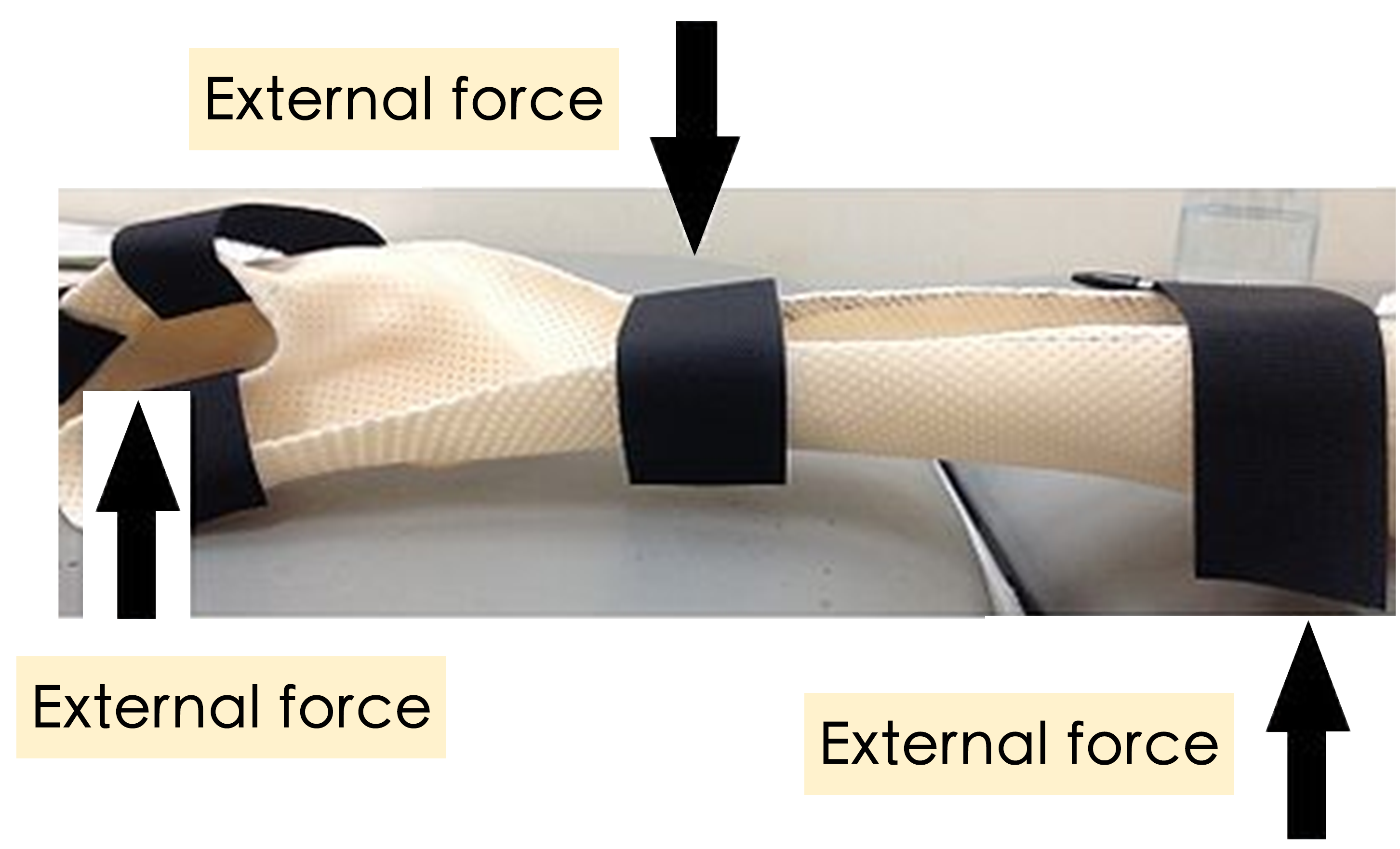 - Through appropriate design, fitting and choice of material, a static and dynamic splintage provides continuous and external traction. The splints are made by thermoplastic materials. Velcro and straps are added to keep the splints in a fixed position. Foam, artificial leather and soft padding are also added to ensure comfort and prevent frictional wounds.