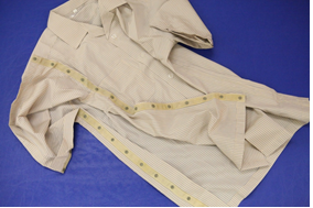 | (Diagram 2) The shirt can be opened at the armpit seam | (Diagram 3) Trousers can be opened at the waist |