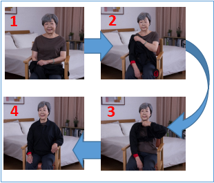 | (Diagram 4) One-handed dressing technique for upper garments |