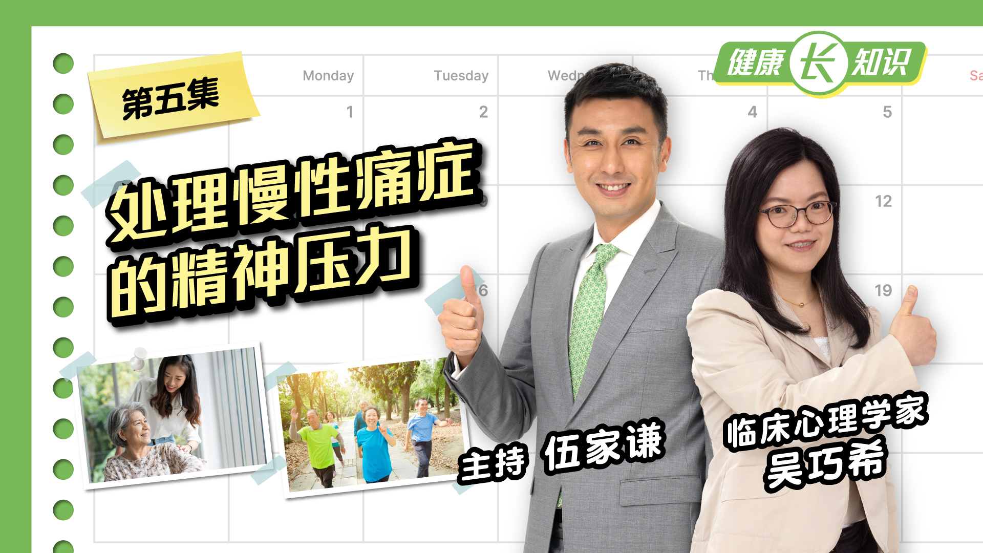 健康「长」知识(广东话旁白配以繁体中文字幕, 简体中文字幕即将推出) 卫生署长者健康服务的跨专业团队就长者中一些常见情况,制作了《健康「长」知识》系列影片,第一至三集内容包括: 职业治疗师介绍长者日常生活中可能用到的辅助器具以及分享如何提升中风患者的自我照顾能力; 护士讲解流感的预防; 更多影片将稍后送上,期待各位长者齐齐健康「长」知识! 《健康「长」知识》系列影片 第一集善用生活辅助器具 第二集提升中风患者之自我照顾 第三集齐打针防流感