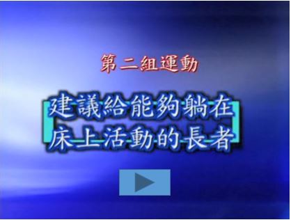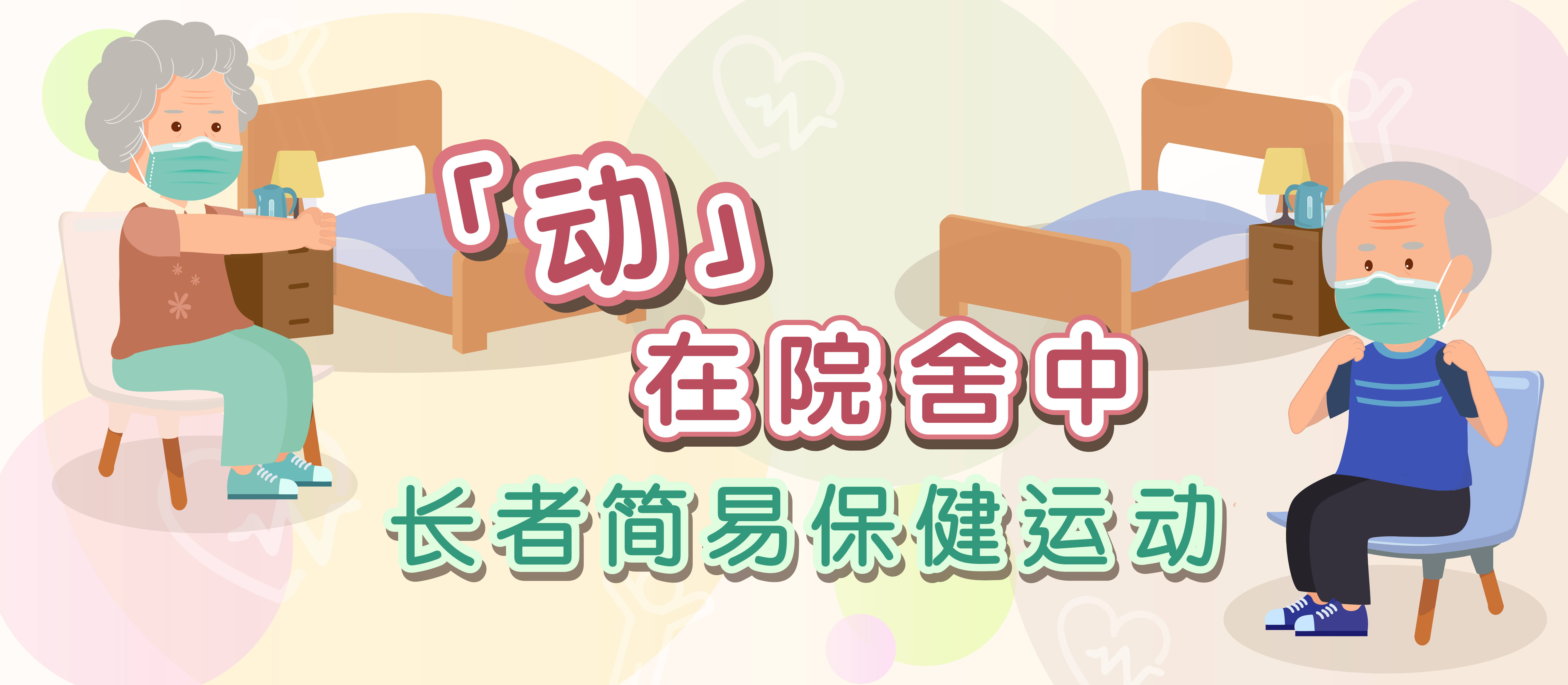 卫生署长者健康服务的物理治疗师设计了 3 套适合院舍居住长者的简单保健运动,目的是让院舍长者在有限的活动空间内,以简单有效的运动来保持基本活动能力、肌肉力量、心肺功能和心境开朗,减低长期卧床和缺乏体能活动带来的健康风险。