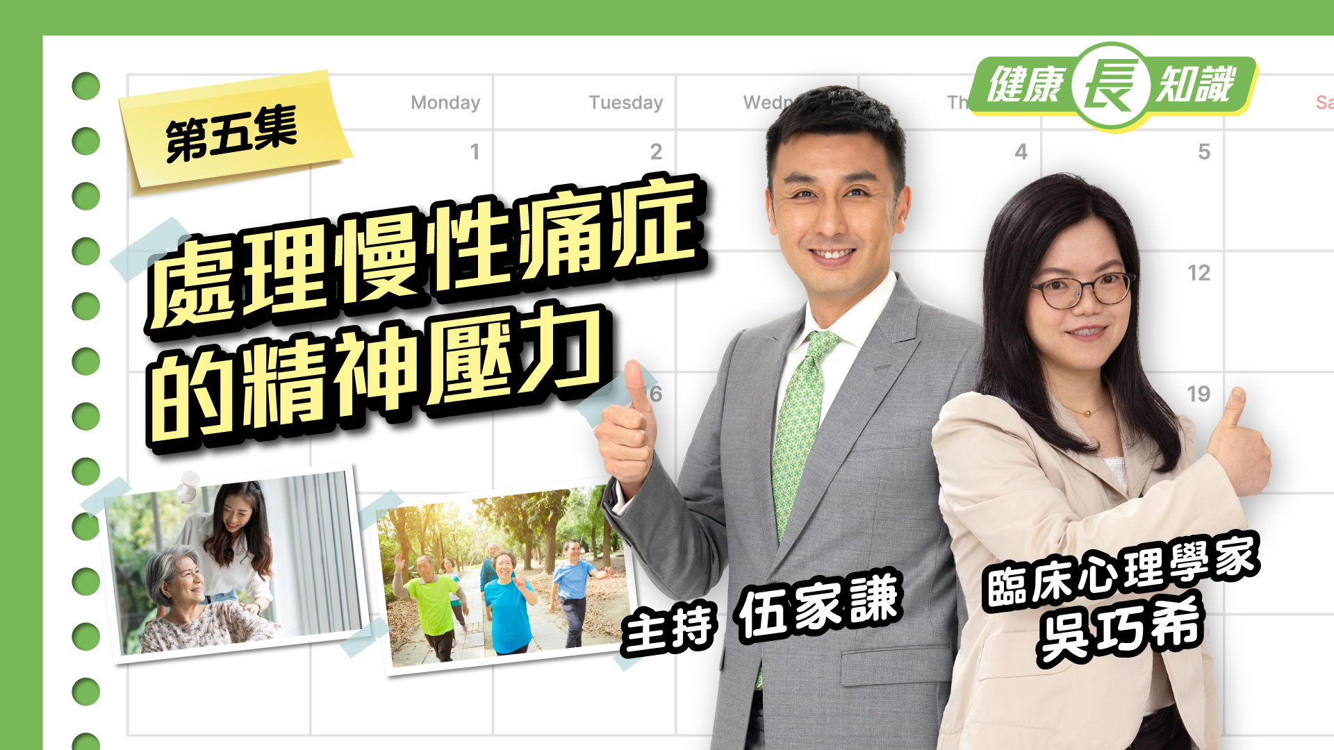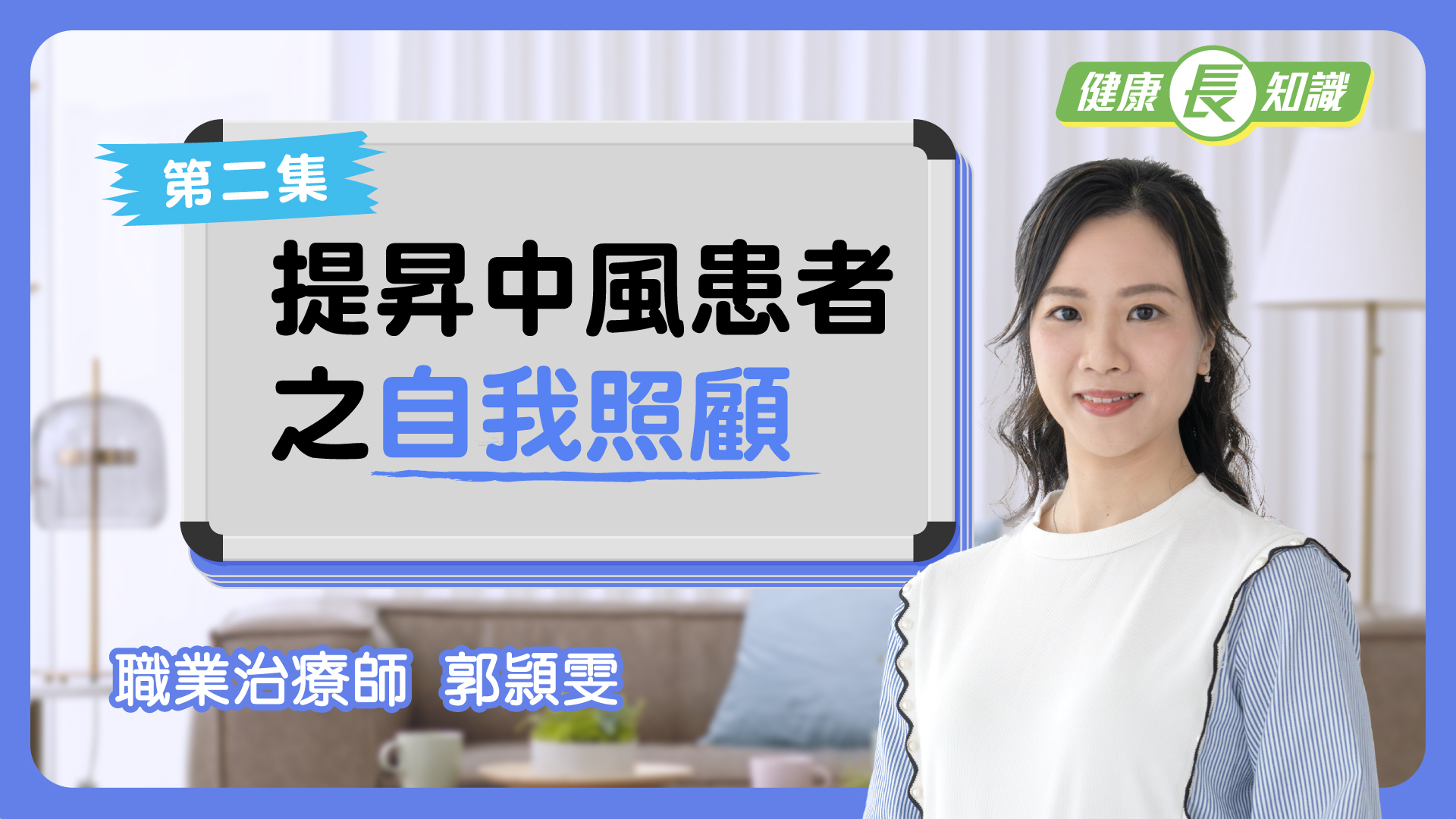健康「長」知識 衞生署長者健康服務的跨專業團隊就長者中一些常見情況,製作了《健康「長」知識》系列影片,第一至三集內容包括: 職業治療師介紹長者日常生活中可能用到的輔助器具以及分享如何提昇中風患者的自我照顧能力; 護士講解流感的預防; 更多影片將稍後送上,期待各位長者齊齊健康「長」知識! 《健康「長」知識》系列影片 第一集善用生活輔助器具 第二集提昇中風患者之自我照顧 第三集齊打針防流感